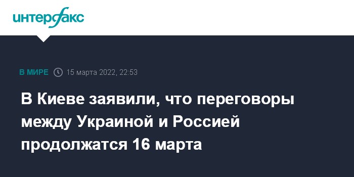 В Киеве заявили, что переговоры между Украиной и Россией продолжатся 16 марта