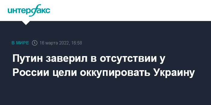 По его словам, "появление российских войск под Киевом, другими городами Украины связано не с намерением оккупировать эту страну, у нас нет такой цели".