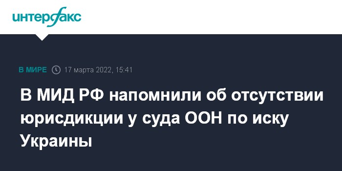 Москва. 17 марта. INTERFAX.RU - Международный суд ООН не обладает юрисдикцией по иску Украины против России, Москва продолжит отстаивать этот факт, заявила официальный представитель МИД РФ Мария Захарова.