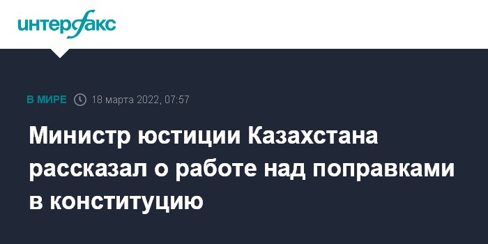 Москва. 18 марта. INTERFAX.RU - Проект закона о внесении изменений в конституцию Казахстана по вопросам полномочий президента страны и ограничений, связанных с его пребыванием в должности, будет разработан в апреле этого года, сообщил в пятницу министр юстиции Канат Мусин.