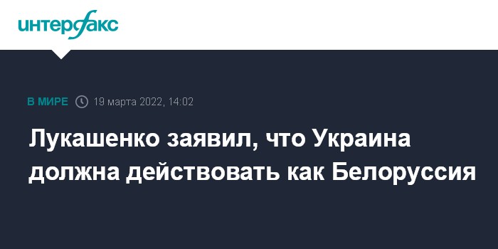 "Сейчас, возможно, единственный момент, который не повторится, чтобы Украине достойно выйти из создавшегося положения. Если момент будет утрачен, он скорее всего больше не вернется. Поэтому Украине надо цепляться за этот момент. И это будет выгодно и для Украины, и для России, и для Беларуси. Главное, мы сохраним тысячи жизней, если мы пойдем сейчас на подписание договора", - сказал президент Белоруссии.