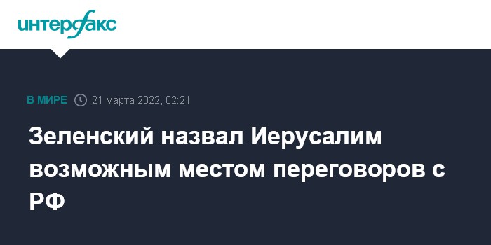 Москва. 21 марта. INTERFAX.RU - Президент Украины Владимир Зеленский считает, что переговоры с Россией могли бы пройти в Иерусалиме.