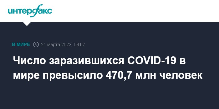 Число заразившихся COVID-19 в мире превысило 470,7 млн человек