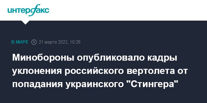 Минобороны опубликовало кадры уклонения российского вертолета от попадания украинского "Стингера"