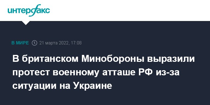 Москва. 21 марта. INTERFAX.RU - Заместитель министра обороны Великобритании Лоуренс Ли в понедельник выразил протест российскому атташе по вопросам обороны, полковнику Максиму Еловику из-за проводимой российской стороной спецоперации на Украине, сообщили в британском ведомстве.