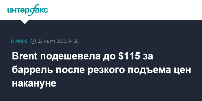 Brent подешевела до $115 за баррель после резкого подъема цен накануне