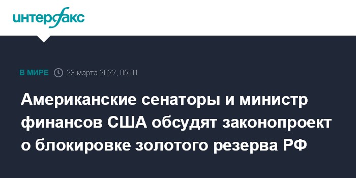 Американские сенаторы и министр финансов США обсудят законопроект о блокировке золотого резерва РФ