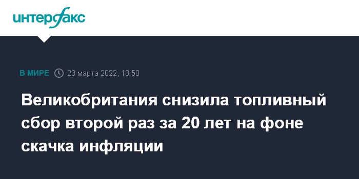 Москва. 23 марта. INTERFAX.RU - Правительство Великобритании снизило топливный сбор, чтобы помочь владельцам транспортных средств, столкнувшимся с резким ростом расходов в условиях скачка стоимости энергоресурсов на мировом рынке.