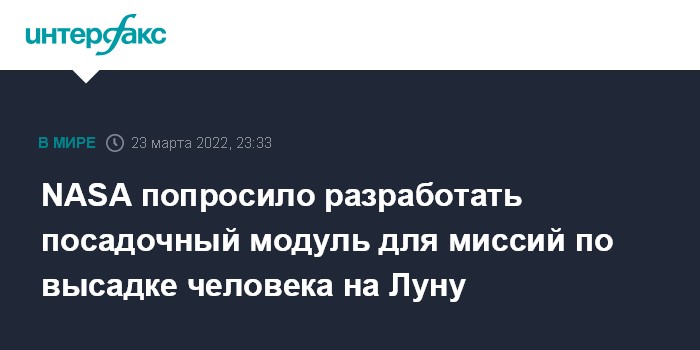 Москва. 23 марта. INTERFAX.RU - Национальное управление США по аэронавтике и исследованию космического пространства (NASA) просит американские компании разработать концепцию нового посадочного модуля для высадки астронавтов на лунную поверхность в рамках программы "Артемида", говорится в сообщении на сайте управления.