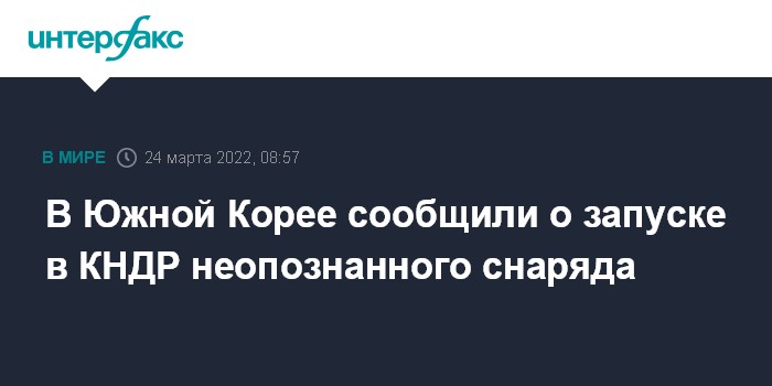 Москва. 24 марта. INTERFAX.RU - В Северной Корее в четверг проведен запуск снаряда неопознанного типа, сообщает агентство "Ренхап" со ссылкой на южнокорейских военных.