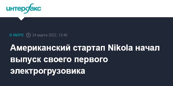 Москва. 24 марта. INTERFAX.RU - Американский стартап Nikola Corp в среду сообщил о начале производства своего первого электрогрузовика Tre, сообщает CNBC.