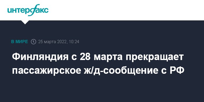 Финляндия с 28 марта прекращает пассажирское ж/д-сообщение с РФ