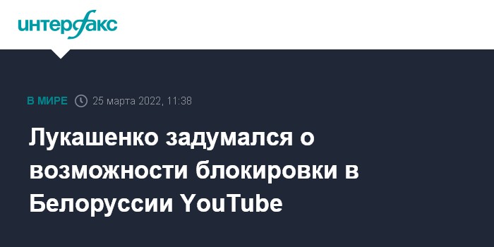 Москва. 25 марта. INTERFAX.RU - Президент Белоруссии Александр Лукашенко на совещании о текущих проблемах СМИ допустил возможность блокировки в стране видеохостинга YouTube и зарубежных соцсетей, но предложил сначала обдумать последствия этого решения и повременить с ним. Его слова приводит агентство "БелТА".