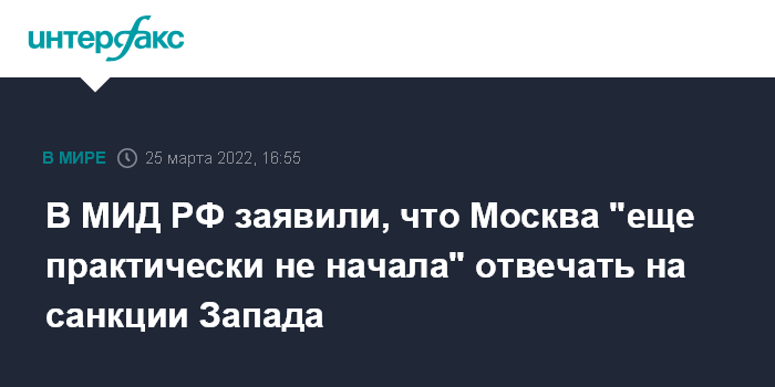 В МИД РФ заявили, что Москва "еще практически не начала" отвечать на санкции Запада