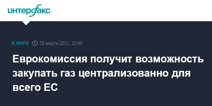 Премьер-министр Италии Марио Драги также сделал заявление на этот счет по итогам саммита ЕС в пятницу. По сообщению итальянского телеканала TGcom24, он пояснил, что идея централизованных закупок газа Еврокомиссией - это скорее предложение, а не окончательное решение.