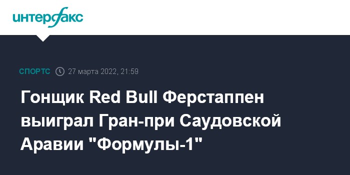Москва. 27 марта. INTERFAX.RU - Пилот Red Bull Макс Ферстаппен победил в гонке Гран-при Саудовской Аравии - второго этапа чемпионата мира по автогонкам в классе "Формула-1".