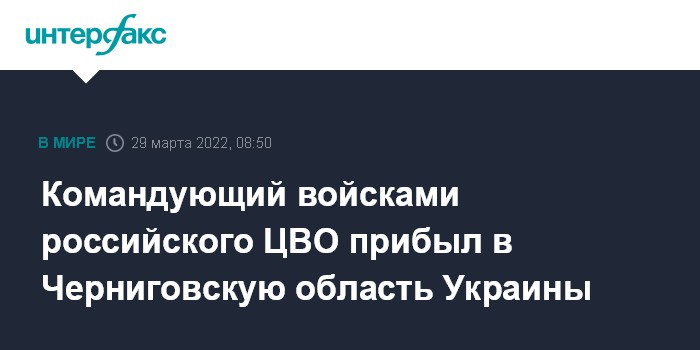 Командующий войсками российского ЦВО прибыл в Черниговскую область Украины