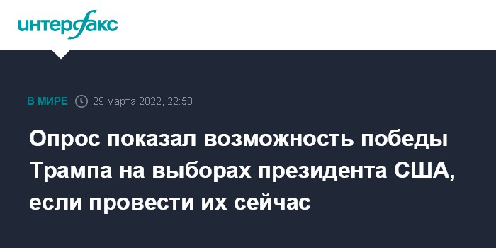 Москва. 29 марта. INTERFAX.RU - Дональд Трамп одержал бы победу над Джо Байденом, если бы выборы проводились сейчас, сообщает во вторник The Hill со ссылкой на данные опроса Harvard CAPS-Harris, если бы выборы президента США проходили сейчас.