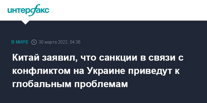 Китай заявил, что санкции в связи с конфликтом на Украине приведут к глобальным проблемам