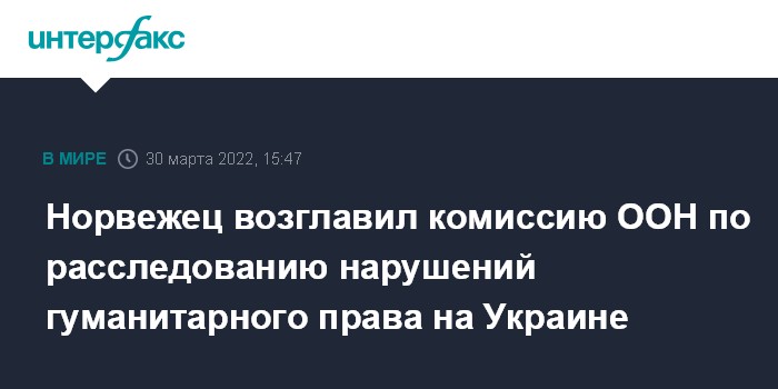 Москва. 30 марта. INTERFAX.RU - Совет ООН по правам человека (СПЧ) учредил независимую комиссию по расследованию фактов нарушения прав человека и международного гуманитарного права на Украине, ее возглавил судья из Норвегии Эрик Месе, пишет Le Figaro.
