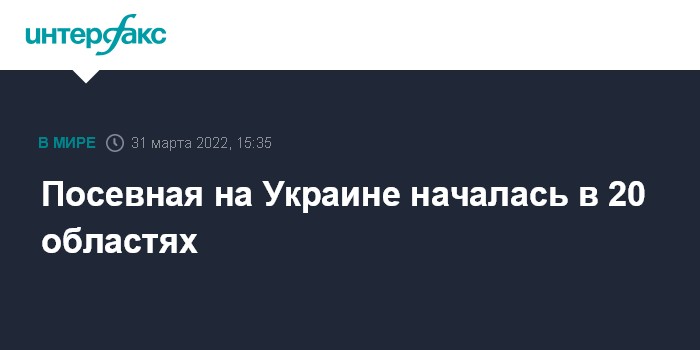 Москва. 31 марта. INTERFAX.RU - Посевная кампания началась в 20 регионах Украины, сообщил украинский премьер-министр Денис Шмыгаль.