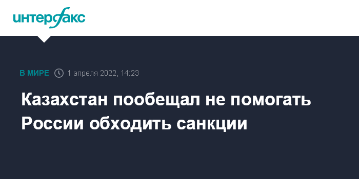 Казахстан пообещал не помогать России обходить санкции
