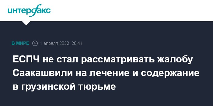 Москва. 1 апреля. INTERFAX.RU - Европейский суд по правам человека исключил из списка рассматриваемых дел жалобу бывшего президента Грузии Михаила Саакашвили, касающуюся его лечения в грузинской пенитенциарной системе.