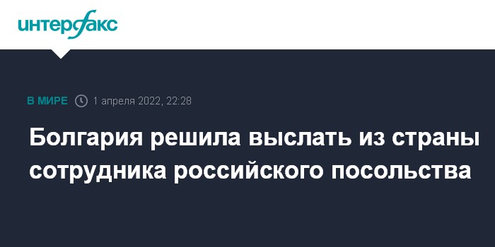 18 марта МИД Болгарии объявил 10 российских дипломатов персонами нон грата, им дали 72 часа на то, чтобы покинуть страну.