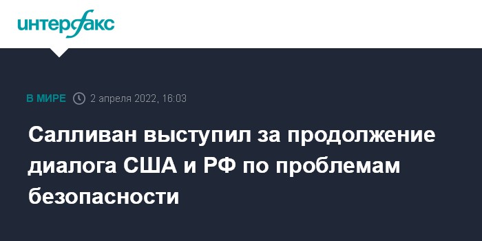 Салливан выступил за продолжение диалога США и РФ по проблемам безопасности