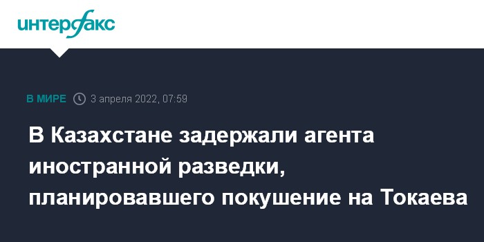 "25 марта 2022 года в городе Нур-Султан контрразведкой КНБ задержан агент иностранной разведки гражданин Республики Казахстан "А", планировавший покушение на президента Республики Казахстан и ряд высокопоставленных государственных служащих", - говорится в сообщении КНБ.
