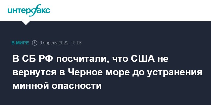 Москва. 3 апреля. INTERFAX.RU - Боевые корабли США не вернутся в Черное море до полного устранения минной опасности, созданной в регионе Вооруженными силами Украины, считает замсекретаря Совета безопасности (СБ) РФ Михаил Попов.