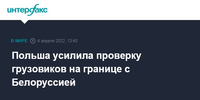 Москва. 4 апреля. INTERFAX.RU - Польские службы усилили проверку грузового транспорта на въезд в Белоруссию в соответствии с решениями МВД и Минфина, сообщает Польское агентство печати в понедельник.