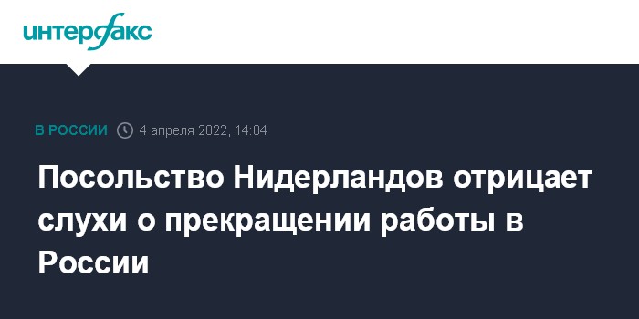 На прошлой неделе некоторые СМИ сообщили, что дипмиссии Нидерландов решили приостановить работу в России до завершения спецоперации на Украине. Дипломаты затем уточнили, что посольство и генконсульство продолжат оказывать консульские услуги.