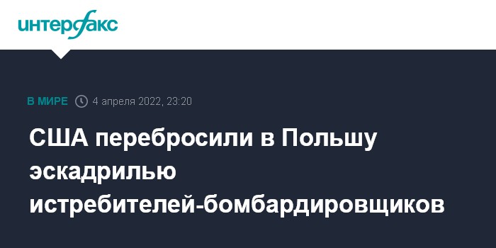 "Переброска американских истребителей на авиабазу Ласк в Польше направлена на укрепление возможностей коллективной обороны НАТО и для поддержки миссии альянса по патрулированию воздушного пространства", - говорилось в сообщении.
