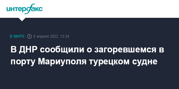 В ДНР сообщили о загоревшемся в порту Мариуполя турецком судне