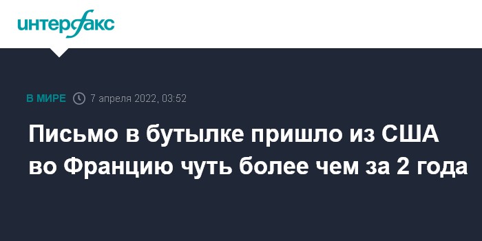 Москва. 6 апреля. INTERFAX.RU - Американка бросила послание в бутылке в океан в штате Джорджия. Чуть больше, чем два года спустя она получила известие о том, что её послание найдено во Франции, передает агентство UPI.