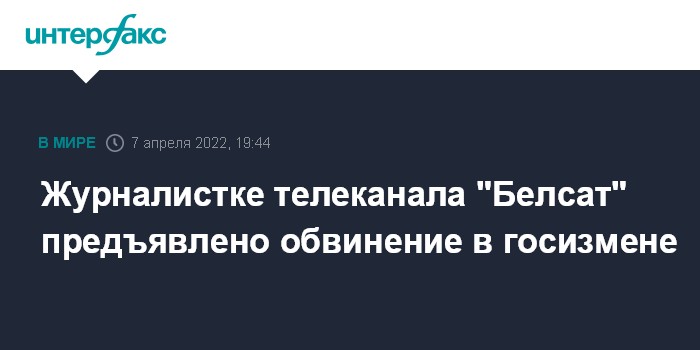 Москва. 7 апреля. INTERFAX.RU - Журналистке телеканала "Белсат" Екатерине Андреевой по статье УК Белоруссии об измене государству (ч. 1 ст. 356), сообщил ее муж Игорь Ильяш.