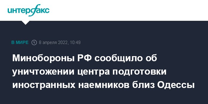 Минобороны РФ сообщило об уничтожении центра подготовки иностранных наемников близ Одессы