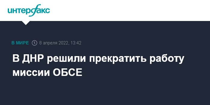 Москва. 8 апреля. INTERFAX.RU - В Донецке приняли решение о прекращении деятельности Специальной мониторинговой миссии ОБСЕ на территории Донецкой народной республики, сообщает МИД ДНР.