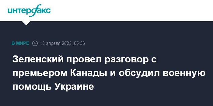 Москва. 10 апреля. INTERFAX.RU - Президент Украины Владимир Зеленский поблагодарил премьер-министра Канады Джастина Трюдо за поддержку, а также предоставление финансовой помощи.