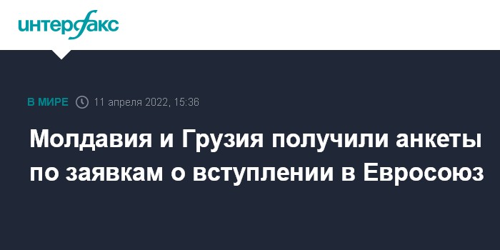 Молдавия подала заявление о членстве в Евросоюз 3 марта, вслед за Украиной и Грузией. На прошлой неделе председатель Еврокомиссии Урсула фон дер Ляйен передала аналогичную анкету президенту Украины Владимиру Зеленскому, когда посещала Киев.