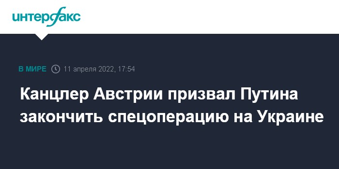 Канцлер Австрии призвал Путина закончить спецоперацию на Украине