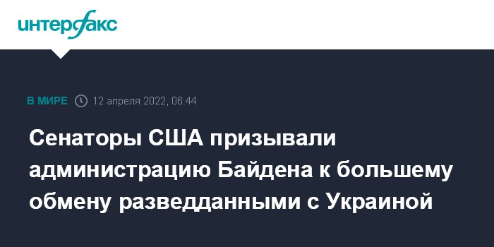 Москва. 12 апреля. INTERFAX.RU - Республиканцы в сенатском комитете по разведке настаивают на том, чтобы администрация президента США Джо Байдена делилась с Киевом большим количеством разведданных, сообщает Axios.