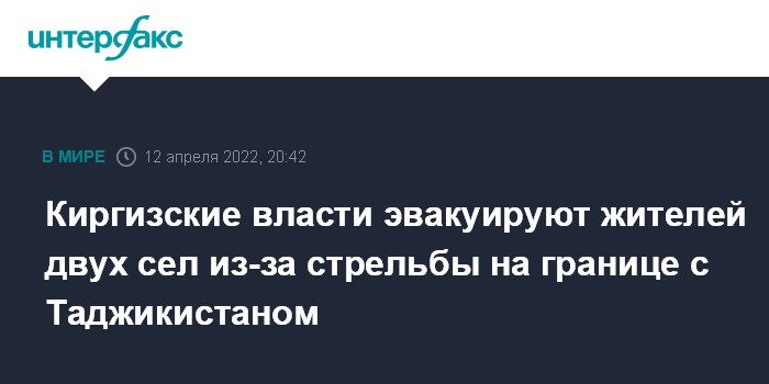 Москва. 12 апреля. INTERFAX.RU - Началась эвакуация мирного населения из сел Кулунду и Жаны Жер вблизи киргизско-таджикской границы, где произошла перестрелка пограничников, сообщили "Интерфаксу" во вторник в администрации Баткенской области Киргизии.