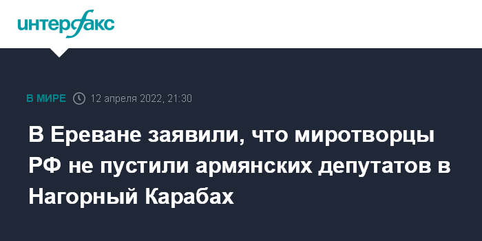 Ранее во вторник оппозиционные армянские депутаты заявили, что российские миротворцы не пропустили их в непризнанную Нагорно-Карабахскую республику.