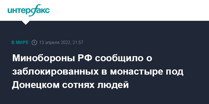Минобороны РФ сообщило о заблокированных в монастыре под Донецком сотнях людей