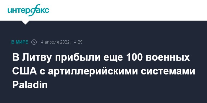 Москва. 14 апреля. INTERFAX.RU - Около 100 солдат Первого батальона 109-го артиллерийского полка Национальной гвардии Пенсильвании (США) прибыли в четверг в Литву с артиллерийскими системами Paladin, сообщает агентство BNS со ссылкой на литовскую армию.