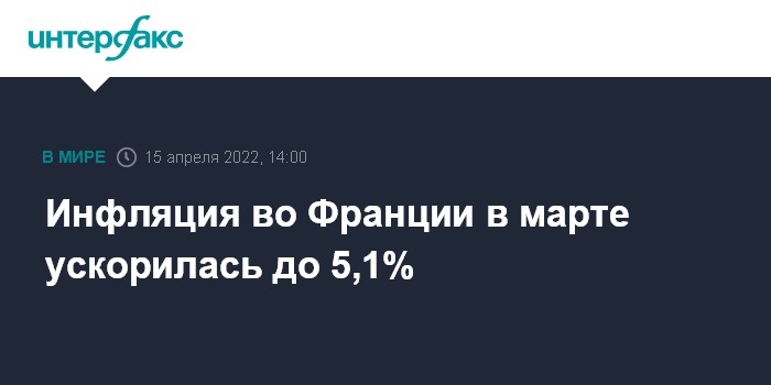 Москва. 15 апреля. INTERFAX.RU - Потребительские цены во Франции, гармонизированные со стандартами Европейского союза, в марте выросли на 5,1% в годовом выражении, свидетельствуют окончательные данные Национального статистического управления Insee.
