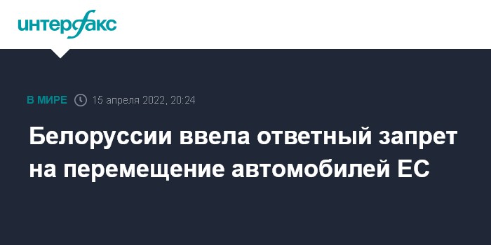 До 23 апреля данное ограничение не будет применяться к транспортным средствам, зарегистрированным в ЕС, которые въехали на территорию Белоруссии до 16 апреля 2022 года.