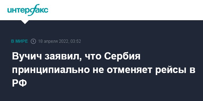 Москва. 18 апреля. INTERFAX.RU - Президент Сербии Александр Вучич заявил, что его страна продолжит полеты в Россию, несмотря на сообщения о "минировании" рейсов.
